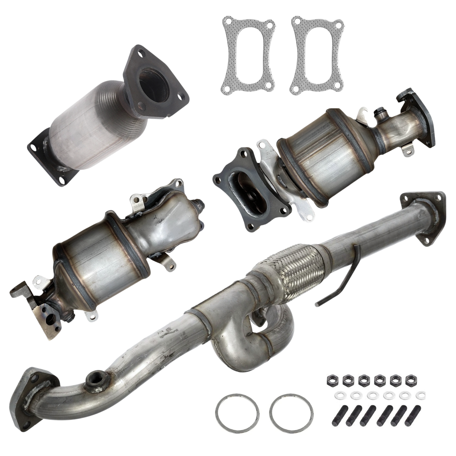 This set includes Flex Y-Pipe and Catalytic Converters (Bank 1, 2, Rear) for 2011-2013 Honda Odyssey 3.5L. Manufactured with high-grade steel for durability. Precisely manufactured to OEM standards. Straightforward replacement that installs without hassle. Delivers durability and reliability in all driving conditions. For federal emissions compliance only